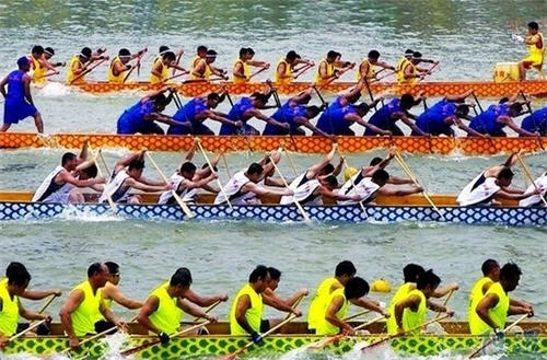Dragon Boat Race, a major convention in the Festival, first appeared in the Warring States Age. At that time, it was only a sacrificial activity. Among the rapid drum, the dragon-like canoes cross the river like hot cakes, not only entertaining the gods but also bringing pleasure for people. Later people held Dragon Boat Race to memorialize the poet Qu Yuan who drowned himself in a river. Now Dragon Boat Race is a traditional entertainment for Chinese people.