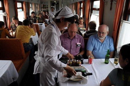 Plenty of food is available during the journey. Trains have dining cars and the carriage attendants will often provide cold drinks, snacks and even freeze-dried meals available for sale. Food on the train is not included in ticket prices.