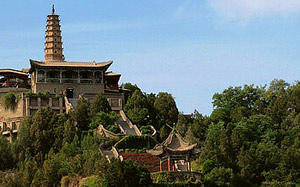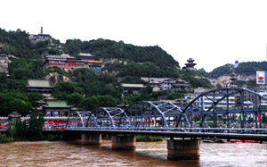 Unfurling below visitors a marvelous view of the city of Lanzhou and the mighty waters of Yellow River rolling on incessantly when they climb onto the top of the hill.
