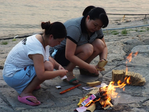 It is said that in folklore that departed ancestors will be released by Yama for half a month. As a result, there is a custom to welcome ancestors at the beginning of July and send them off on July 15. When sending off the spirits, people will burn a lot of paper "money" so ancestors can spend it in the nether world. They will also insert some paper "money" into an envelope on which the user's name has been written. The envelope will be burnt for sacrifice.