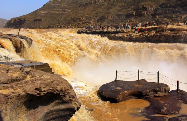 After getting up, visit Hukou Waterfall: it is the second largest waterfall in China and the largest yellow waterfall in the world. The Yellow River rushes to this point, with cliffs standing on both sides of the river, and the estuary is as narrow as a Hukou, hence the name Hukou Waterfall. The Yellow River traveled thousands of miles to Hukou. The surface of the river suddenly narrowed, and the huge water flow descended from the sky.