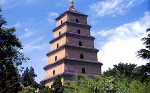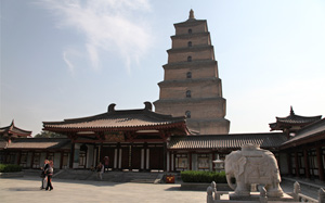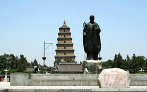 The Big Wild Goose Pagoda, a Tang Dynasty landmark, is a seven-story pagoda initially constructed in 652 AD. One of the pagoda's many functions is to hold sutras and figurines of the Buddha that were brought to China from India by the Buddhist translator and traveler - Xuanzang.
