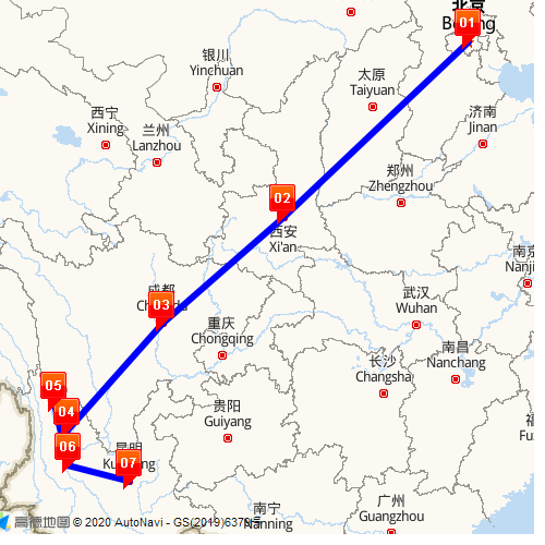 Driving Route: Chengdu - Guanghan - Xichang - Lugu Lake - Lijiang - Shangri-la - Dali - Pu'er - Yuanyang - Kunming