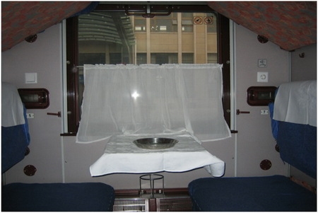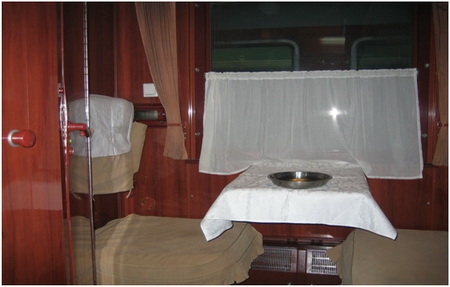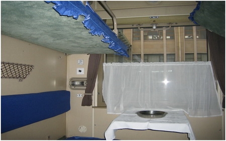 This train uses Chinese rolling stock and has 3 classes, including deluxe sleeper, soft sleeper and hard sleeper. Deluxe class is 2-berth compartment, soft sleeper and hard sleeper are 4-berth compartments. The so-called hard sleeper is relatively less comfortable because its bunk tends to be narrower.