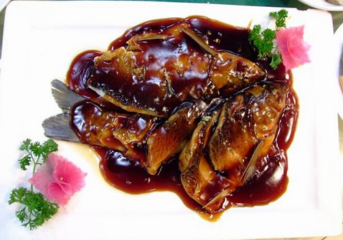 Heat the pan by using medium fire. Put 50 grams of oil, a little onion and ginger. After stir-fly, add 15 grams of yellow rice or millet wine and appropriate amount sauce and salt. When boiled, put the fish into the pan. And then cook the fish. The skill is: when you see the erected fins and prominent eyeballs, you can take the fish out. In general, this procedure will need about 15 minutes.
