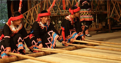 They are master at handicrafts. These crafts not only come in many variations, but also have special meanings. The ones they are most proud of are batik, sculpture, painting, and printing and dying. Clothes differ according to the regions where they live. However, their clothes are mainly made of blue cloth with various pictorial designs on the fabric. Men wear short shirts without collars, and trousers or pants with the lower part wrapped. Women wear trousers, short skirts or pleated skirts decorated with unique embroidery. Also their special hair adornments are dazzling and attractive.