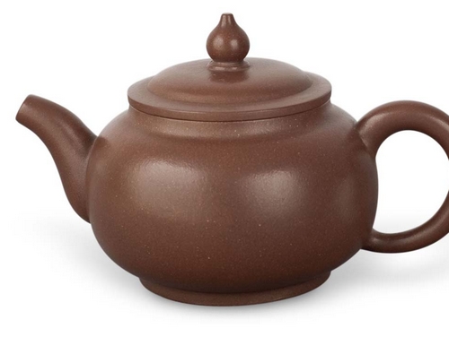 Yixing clay teapot or Zisha pot (literally means purple sand pot) is considered a precious piece of traditional Chinese tea art with a history of more than 2400 years. Yixing clay is baked at lower temperature than porcelain. It is unglazed. All of the teapots look much the same to untrained eyes - no more than 10 to 15 centimeters in height and diameter, of dark non-glossy surface, with a matching cap on top and mouth on the side. The teapot absorbs a small amount of the tea as it brewed inside. To maintain the consistency of the flavor, sometimes the user has several pots for different type of tea.